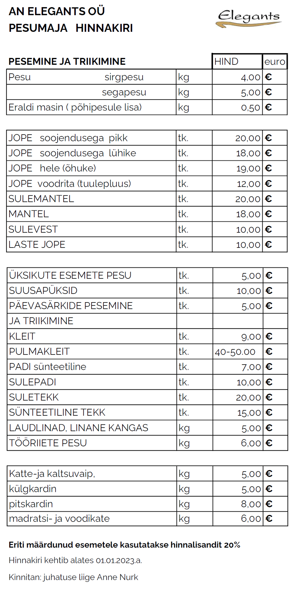 Pakume professionaalset pesu- ja triikimisteenust nii eraisikutele kui ka ettevõtetele. Hoolitseme, et riided, tööriided, kodutekstiilid ning ka karusnahatooted oleksid puhtad, värsked ja korrektselt hooldatud. Võimalik on pesta ka üksikesemeid ning tellida lisateenuseid, nagu suletoodete, karusnahkade ja madratsikatete pesu.